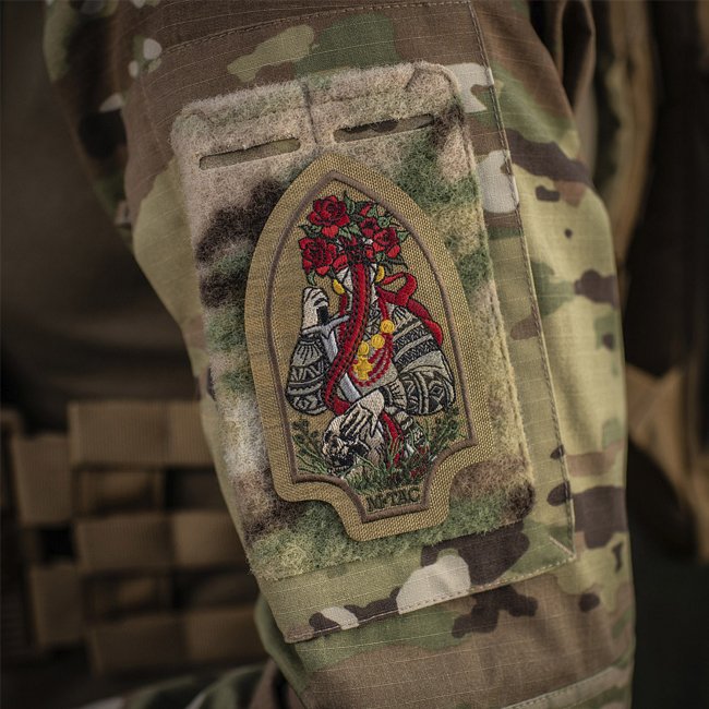 M-Tac Motanka Embroidery Patch - Coyote. Made with Cordura 500D on the front and hook surface on the back. Dimensions 110 x 65 mm.