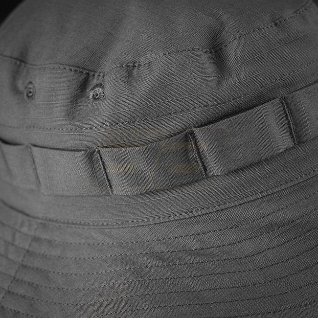 M-Tac Panama Boonie Ripstop - Dark Grey - 57 is a tribute to the American Boonie with semi-rigid brim and unique crown tape for additional camouflage. Chin cord keeps it secure, eyelets provide ventilation. Durable rip-stop fabric with hidden seams ensure