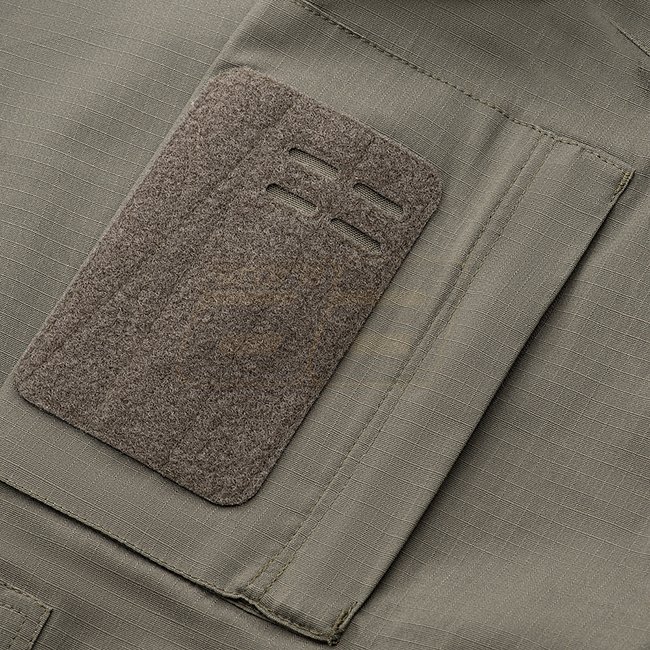 In the upper part of the back there is a reinforced yoke with a velcro panel for an IR marker under the collar, expansion folds around the arms help maintain freedom of movement, even when a body armor is worn. The sleeves are equipped with an elbow pocket for a soft insert. The cuffs are adjustable in width using Velcro closures.
