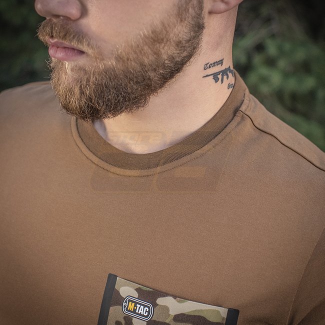 A versatile and comfortable choice, the M-Tac Pocket T-Shirt 93/7 in Coyote is ideal for everyday wear. Made from high-quality breathable fabric, this shirt ensures excellent body thermoregulation with its anatomic cut and thin elastic jersey, accentuatin