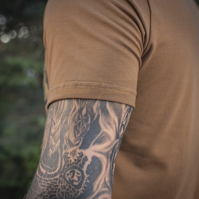 The M-Tac Pocket T-Shirt 93/7 in Coyote is a versatile option for daily wear. Made of high-quality breathable fabric, it ensures optimal body thermoregulation. The anatomic cut and thin elastic jersey offer a flattering fit, while the small breast pocket