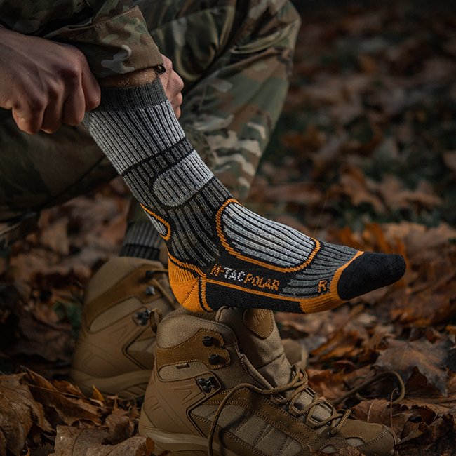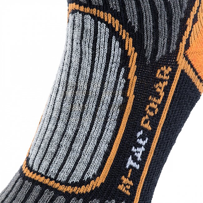The Polar Merino Socks 40% for outdoor activities. Excellent thermal insulation properties unfold their strongsuit when trekking in winter. In summer, you will appreciate the ability of the fiber to absorb moisture up to 30% of its volume weight.