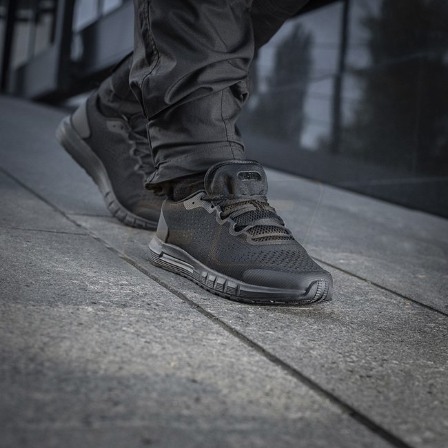 M-Tac Pro Summer Sneakers - Black - 47: High-quality synthetic sneakers offering breathability, wear-resistance, and durability. Effective cushioning and shock protection with rubberized toe and heel. Mesh areas for ventilation and ideal microclimate. EVA