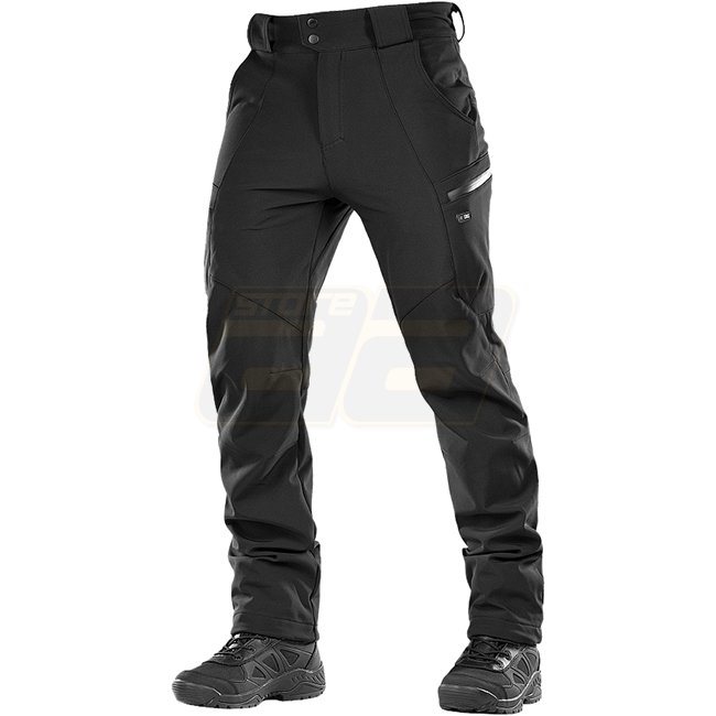 M-Tac Soft Shell Winter Pants - Black - L. Combining heat-insulating fleece with wind and moisture resistance. Ideal as a top layer in off-season and winter. Features fleece lining for added comfort. Material: 100% polyester.