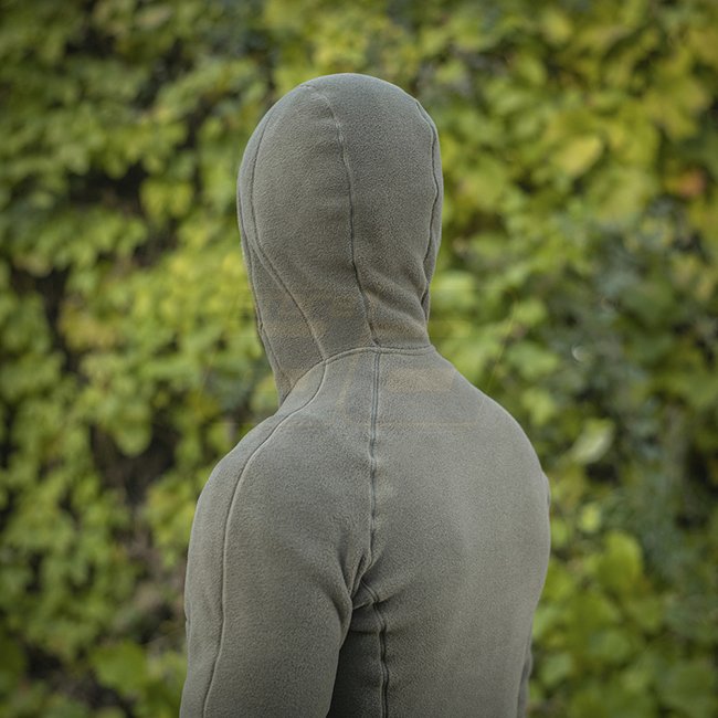 Made of a premium Polartec 200 fleece. This material is durable and pleasant to the body, retains warmth well, and doesn't pill. The high collar of the hood will reliably protect from cold and wind. The raglan sleeves are specially cut for comfort and freedom of movement. This cut helps to achieve an unusual shoulder shape, resulting in a stylish, rounded silhouette. Flat seams guarantee comfort and don't chafe.