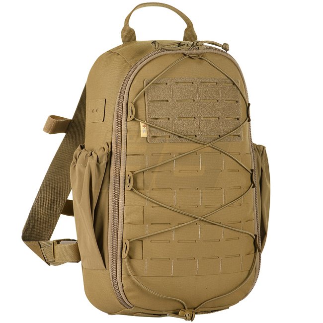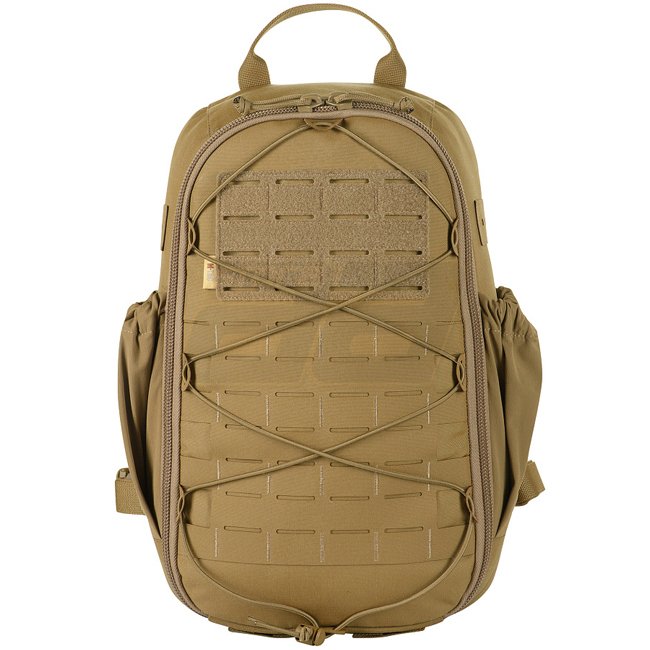 M-Tac STURM Elite Backpack - Coyote excellent for short self-sufficient field stays, made of durable Cordura 500D, with flexible side pockets for water bottle, spacious main compartment designed as a suitcase. Features hydration system compartment, MOLLE
