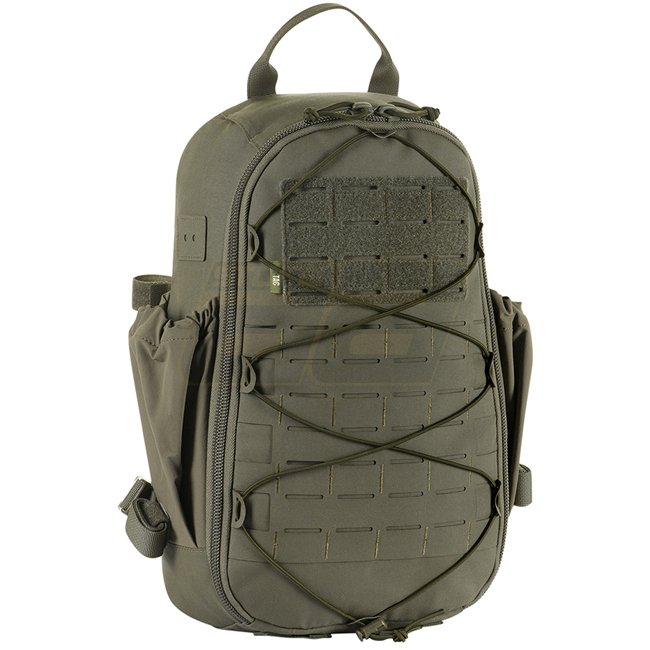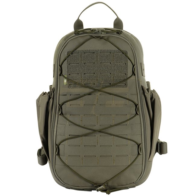 Inside there is a compartment for a hydration system, and on top there is an opening for its tube. On the flap of the backpack there are two mesh pockets, which are suitable for stowing EDC accessories. The front of the backpack is equipped with a MOLLE Laser Cut system, made of Cordura 500D, which allows you to attach additional equipment.