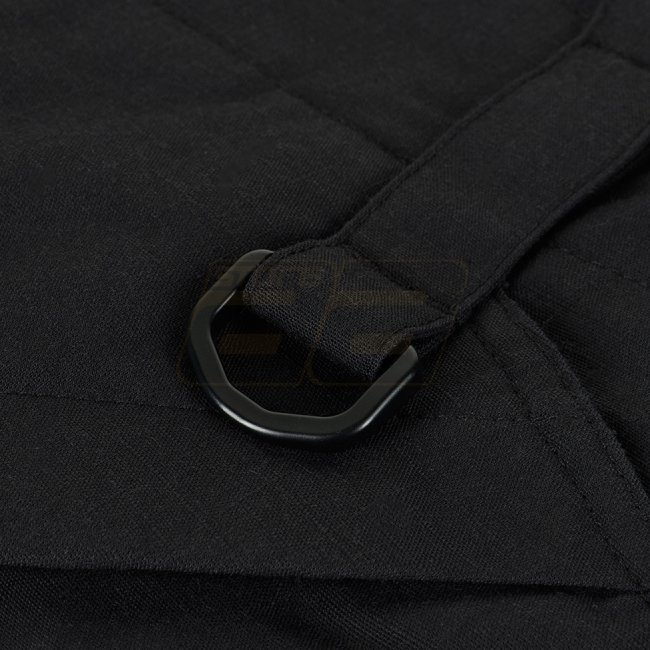 The belt of the pants is adjustable using webbing straps, and they're designed to be worn with a belt up to 5.5 cm wide. There are two D-rings at the front for attaching various gear. The width of the knee area is adjustable with the help of velcro. An elastic cord is stretched along the lower edge of the pants and Velcro closures allow size adjustment.