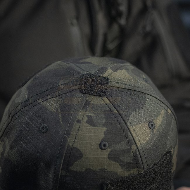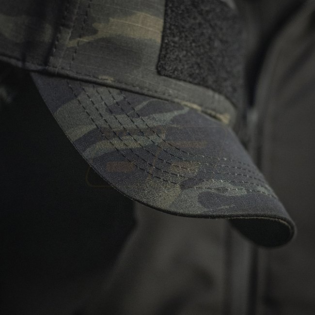 M-Tac Tactical Cap - Multicam Black - L/XL, made of 50% cotton, 50% nylon fabric. Features six panels in plain rip-stop fabric, Teflon impregnation for water and mud protection, dense shape-keeping visor, signature panel at the back, Velcro panel at the f
