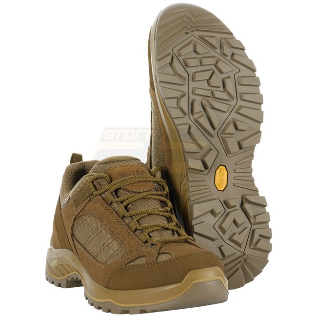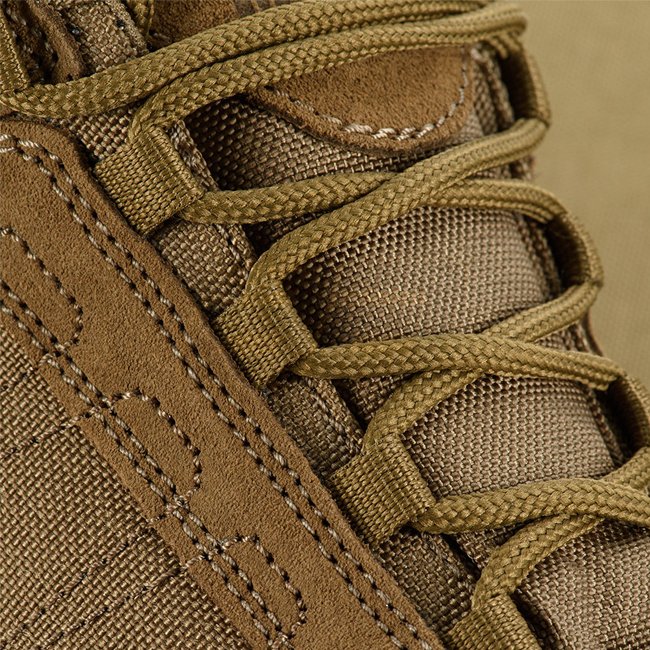 M-Tac Tactical Demi-Season Pro Line Sneakers in Coyote color, size 40. Updated version featuring high-quality materials and Vibram sole. Made of dense suede and Cordura for abrasion protection, moisture-resistance, and breathability. Extended lacing, stro