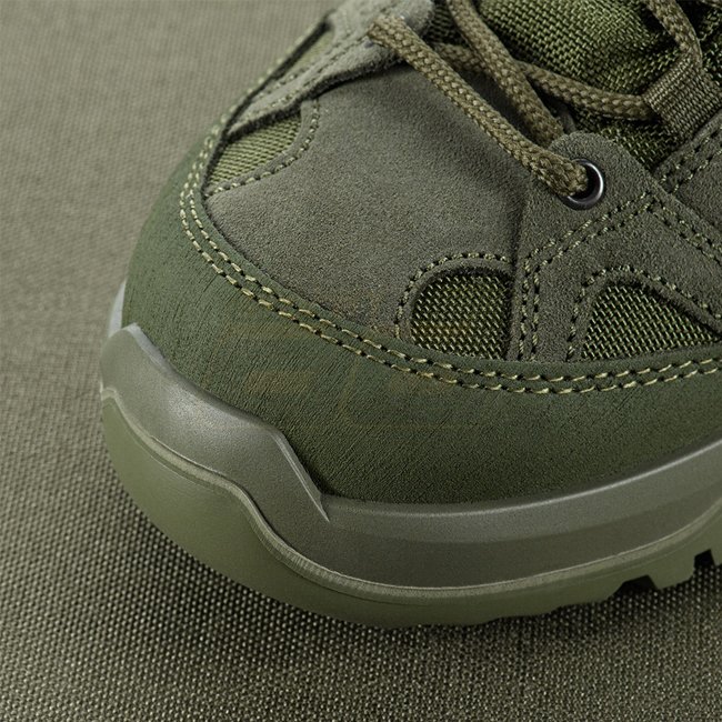 M-Tac Tactical Demi-Season Pro Line Sneakers - Ranger Green - 41 are high-quality sneakers made of dense suede and Cordura for abrasion protection. Moisture-resistant and wear-resistant, ideal for training and off-road trips. Features extended lacing for