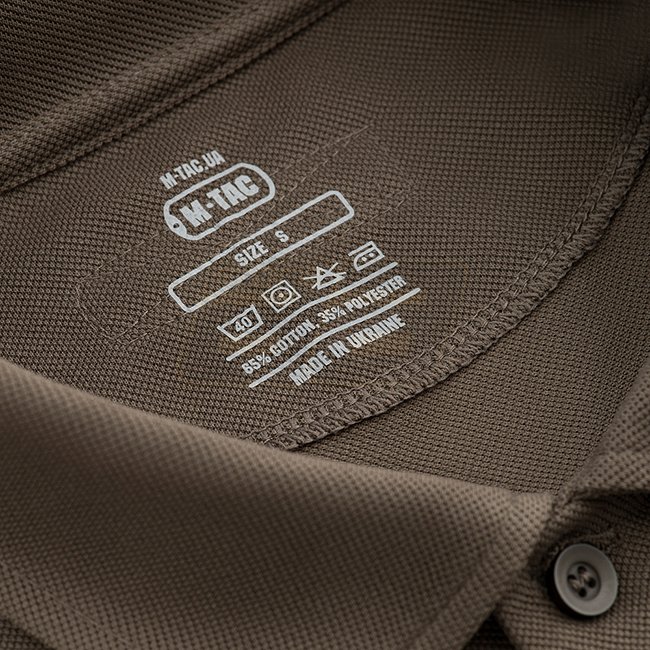 M-Tac Tactical Polo Shirt 65/35 in Dark Olive, XS size. Made of 65% cotton, 35% polyester.