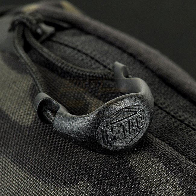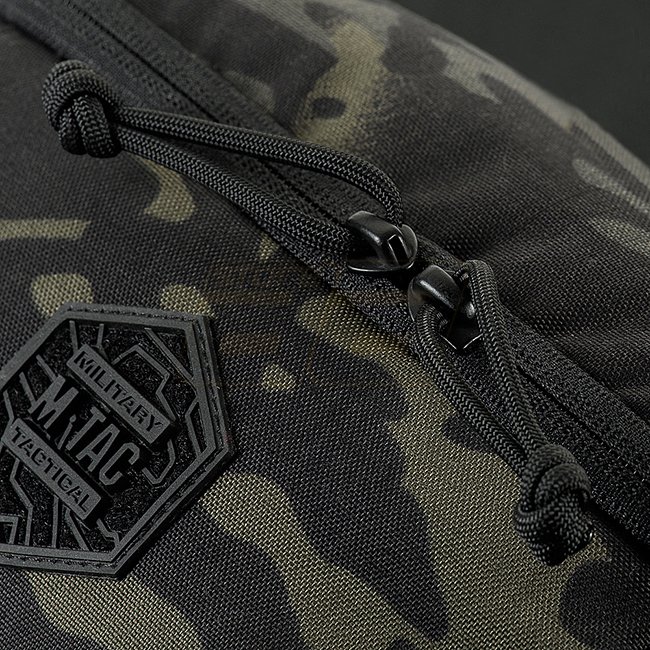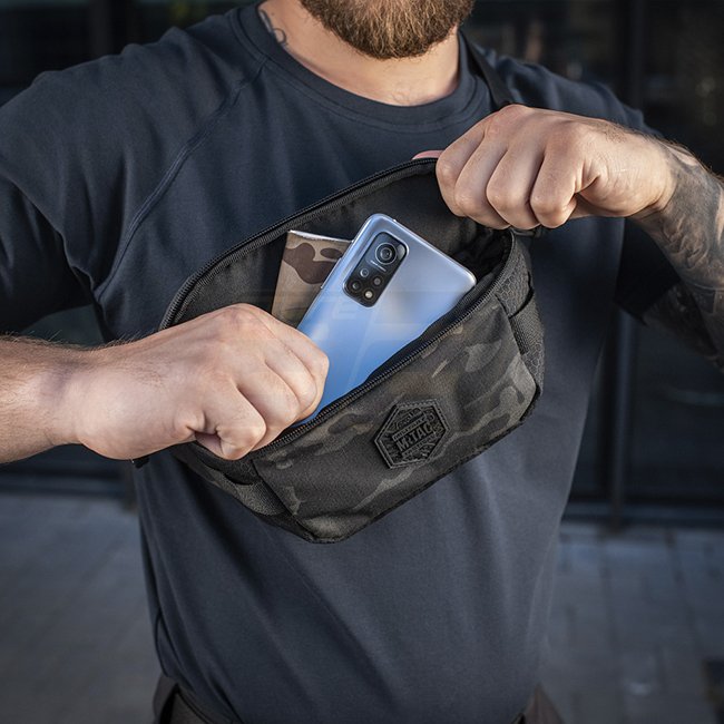 The M-Tac Tactical Waist Bag Elite Hex in Multicam Black is made of ultra-durable Cordura 500D and Cordura Hex 1000D materials. It features YKK and Woojin hardware, adjustable strap, and two compartments for everyday items. MOLLE loops for accessories and