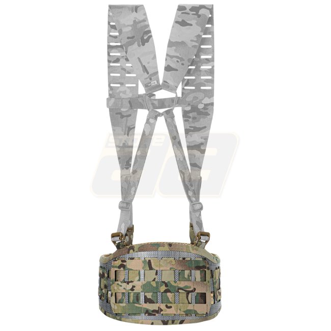 Four additional buckles allow shoulder straps to be attached and the belt to be used as part of a relief belt-shoulder system (not included).