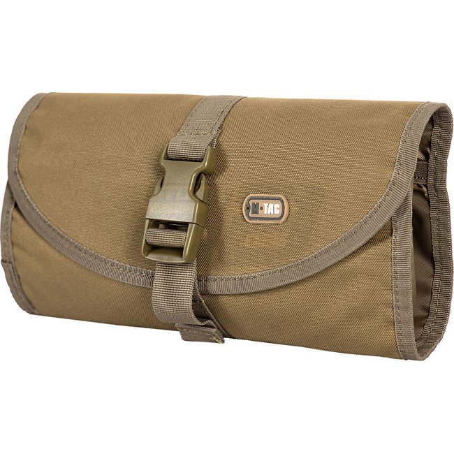 The M-Tac Toiletry Kit in Coyote color is a practical and compact bag ideal for storing all your toiletries. Made of durable 600D polyester, it is designed to hold essential items like a razor, toothbrush, toothpaste, creams, shampoos, and more. The bag i