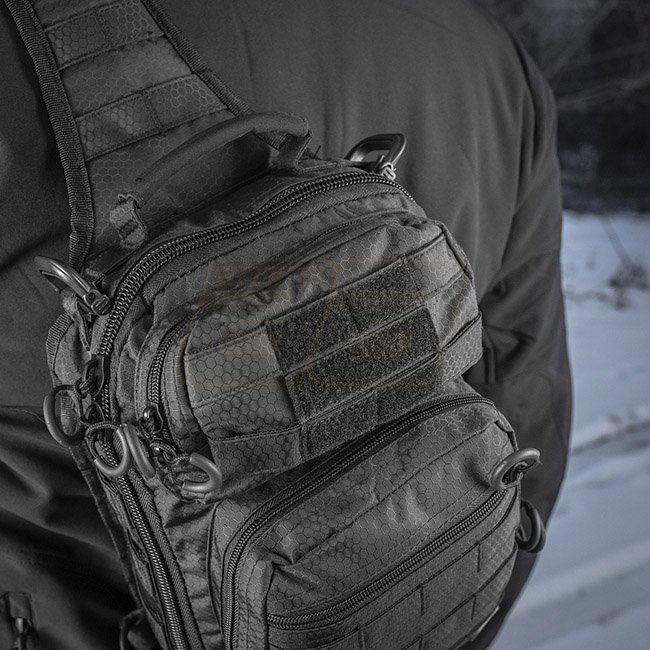 M-Tac Urban Line City Hunter Hexagon Bag - Black: Stylish and functional bag perfect for urban adventurers. Made of robust, water-repellent nylon with spacious compartments for all essentials. Adjustable strap and handles for carrying comfort. Quick acces