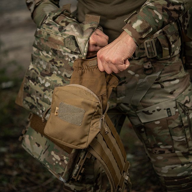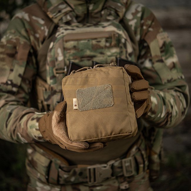 M-Tac Utility Pouch Elite Small - Coyote: Ensures order and reliable storage of essentials like EDC kit, weapon accessories, medicine. Made of Cordura 500D, resistant to abrasion and high loads, featuring MOLLE interface and front velcro panel for IDs or