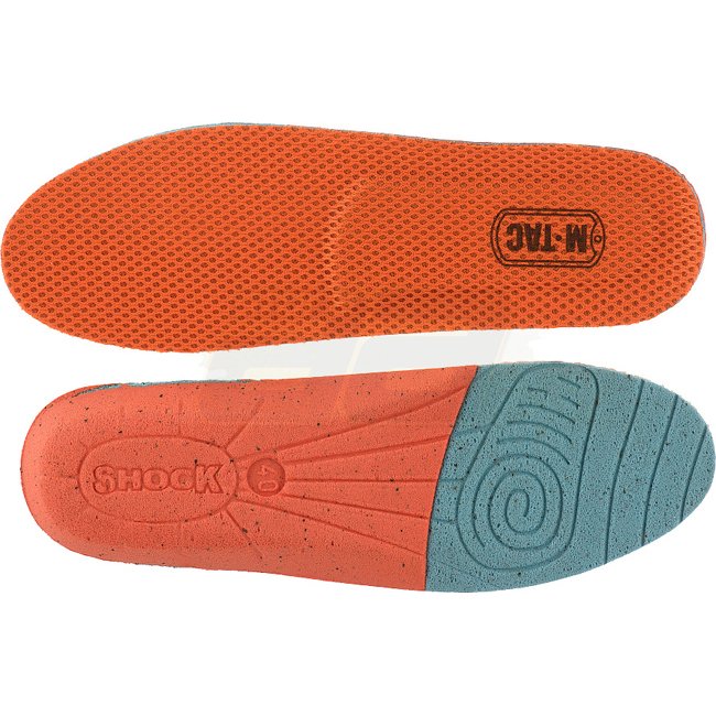 Comfortable PU foam insoles with molecular memory effect for excellent shock-absorption, stability, and stress reduction. Damper mesh for ventilation, suitable for sports, tactical, and casual shoes. Washable. Material: Polyurethane.