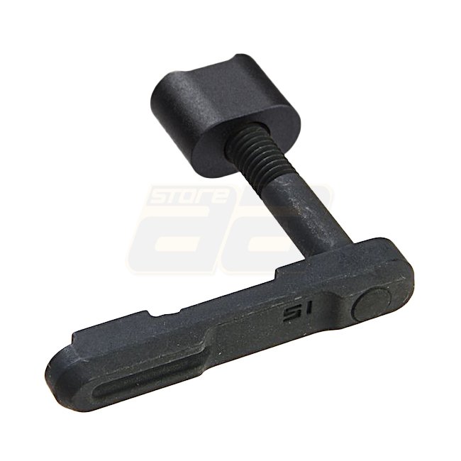 Madbull Strike Industries M4 GBBR Enhanced Magazine Catch Aluminium - Black: Upgrade your rifle with this high-quality, durable magazine catch in sleek black aluminum.