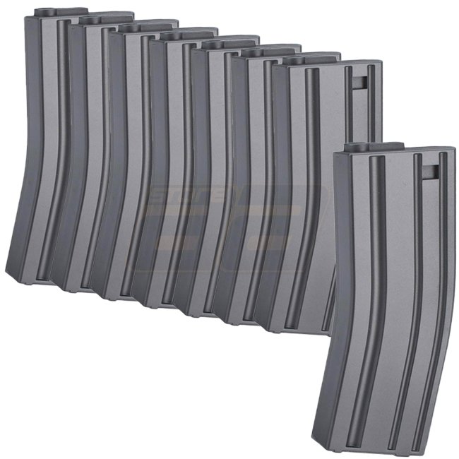 High quality MAG M4/M16 130rds Magazine Set, containing 8 durable plastic magazines for M4/M16 Series rifles.