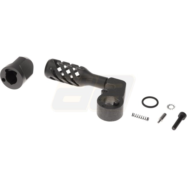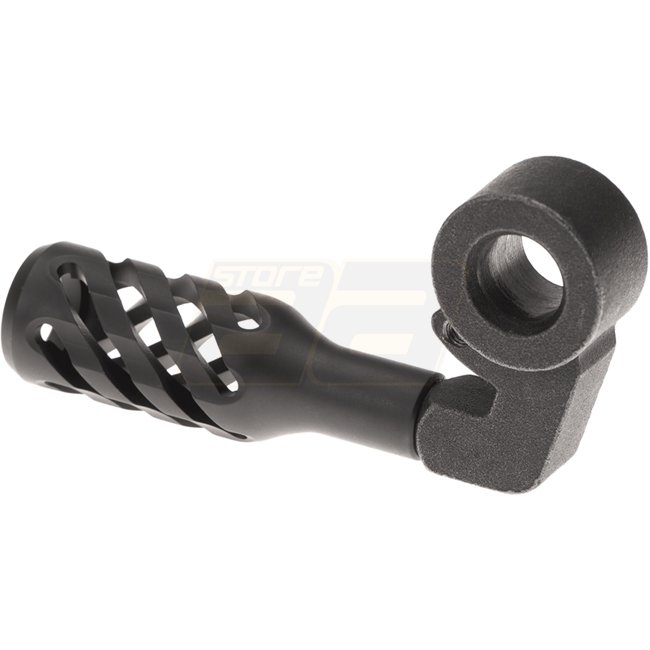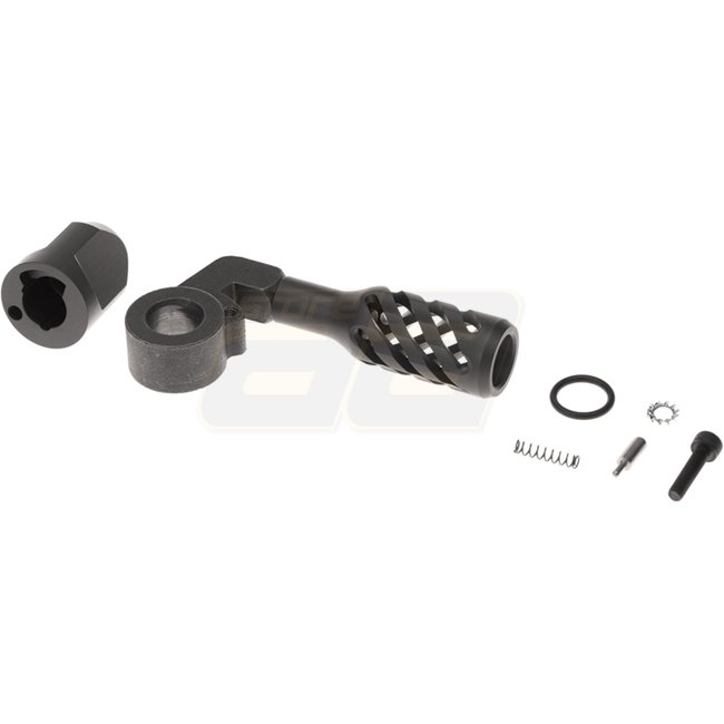 A stylish and ergonomic upgrade for your Maple Leaf VSR-10 rifle, this Twisted Hollow Bolt Handle & End Cap enhances handling and aesthetics. Designed for left-handed shooters, it offers a comfortable grip and a sleek finish. Elevate your shooting experie