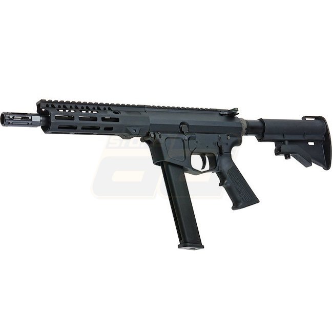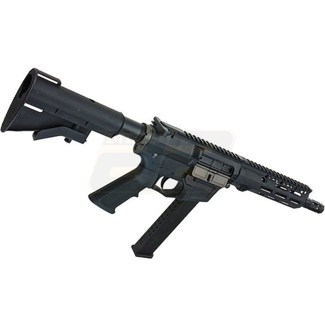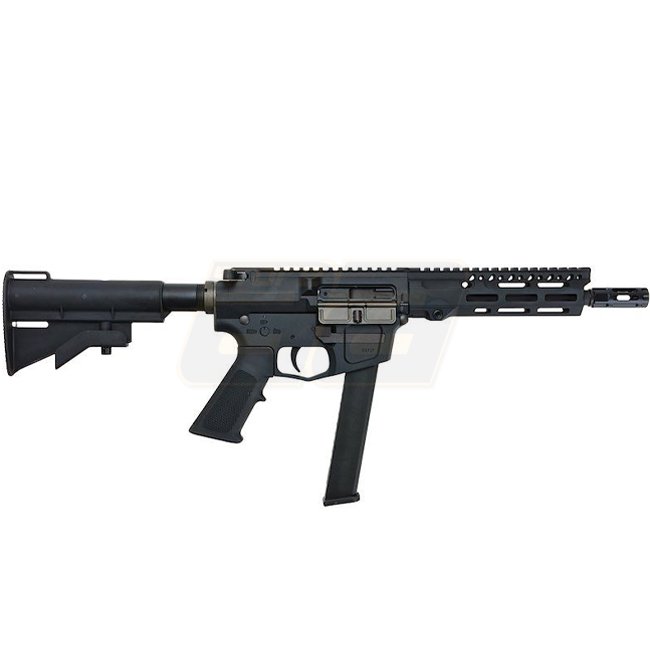 Marksman IX Gas Blow Back Rifle - Black. Metal / Polymer, 50 (6mm) mag capacity, 610-695mm length, 2320g weight, 14mm- / CCW muzzle thread, 350-370 FPS, Semi Auto & Full Auto shooting mode, 48.02-50.76m shooting range, Adjustable hop up. Gun and magazine