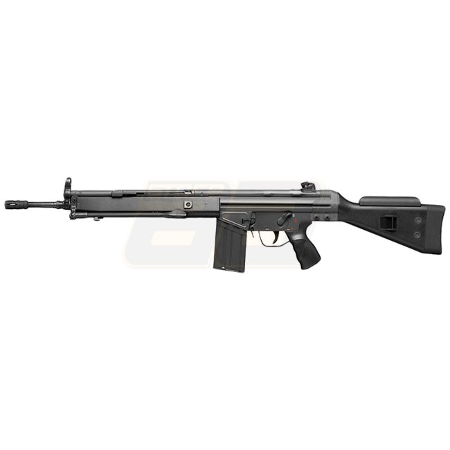 High-quality Marui G3-SG1 AEG with 3900g weight, 1036mm length, and 469mm inner barrel. Semi Auto & Full Auto shooting modes, adjustable Hop Up, and 265-285 FPS muzzle velocity. Great for airsoft enthusiasts.