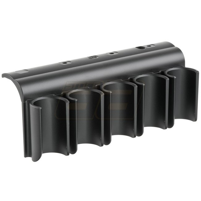 Marui M870 Shot Shell Holder - Lightweight plastic shell holder that attaches to the host weapon between the receiver and upper mount rail. Holds 5 shot shells. Suitable for Marui M870 Tactical/Breacher.
