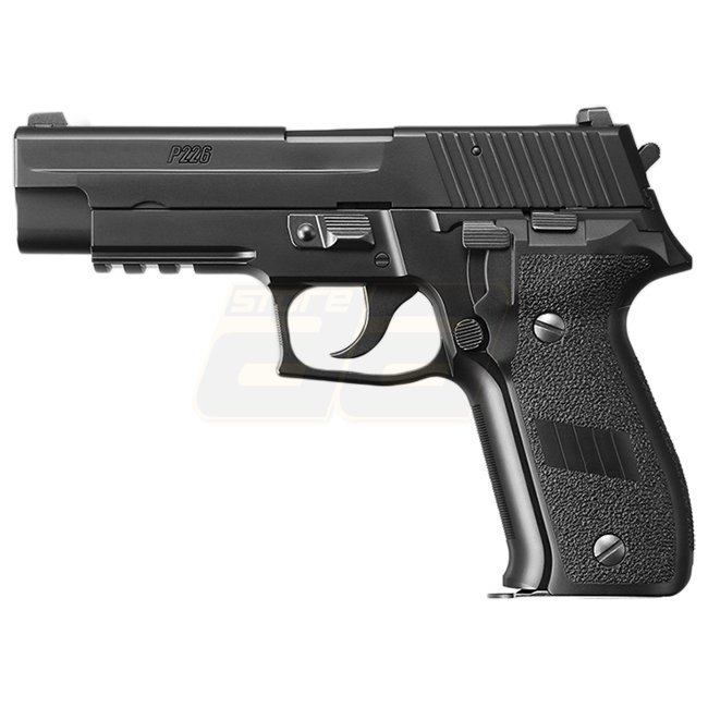 High-quality Marui P226 Gas Blow Back Pistol constructed with durable ABS plastic, featuring a magazine capacity of 25 rounds (6mm), a length of 220mm, and a weight of 741g. This pistol offers an inner barrel length of 97mm, a shooting velocity of 280-300