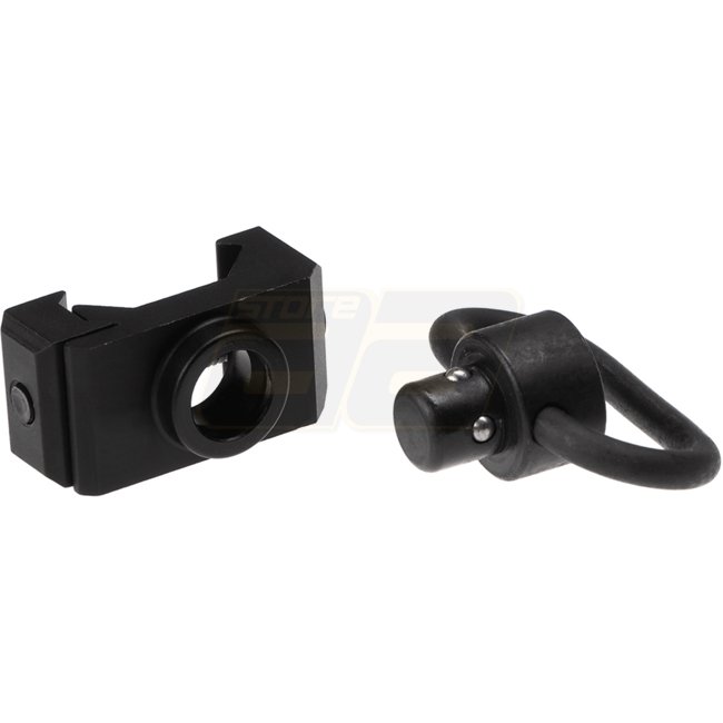 METAL QD Sling Attachment Mount in sleek black color. Perfect for attaching and detaching your sling quickly and easily.