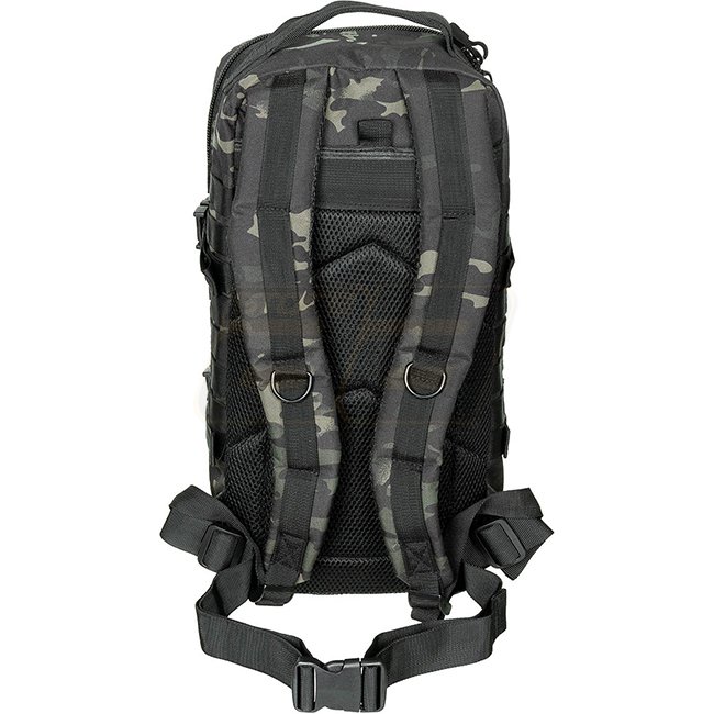MFH Backpack Assault 1 - Camo - Adjustable, padded shoulder straps, detachable waist strap, large compartments, hydration pack velcro, breathable mesh paddings, pen holders, Molle loops. Capacity: 30L. Dimensions: 23x44x24cm. Weight: 1.2kg. Material: 100%