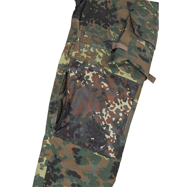 MFH BW Combat Pants Mission / Exercise - Fecktarn - M: German army model, front zip, drawstring waist, leg pockets, reinforced seat, wide belt loops, removeable knee padding, compression straps, ventilation zip, mesh gaiters. Outer: 65% Cotton, 35% Polyes