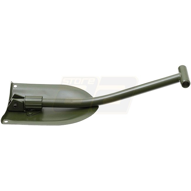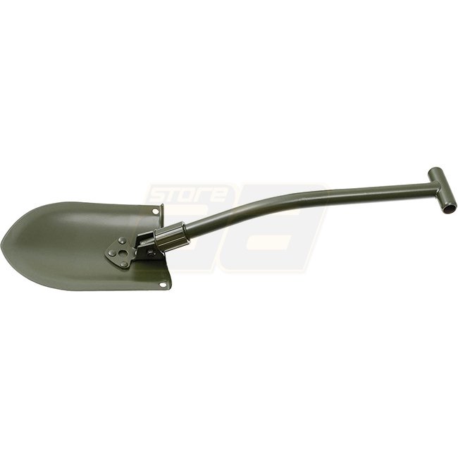 Folding spade with screw lock, curved shaft, t-handle, step blade. Size: 26x18cm. Total length: 70cm. Folded length: 50cm. Weight: 1.3kg.