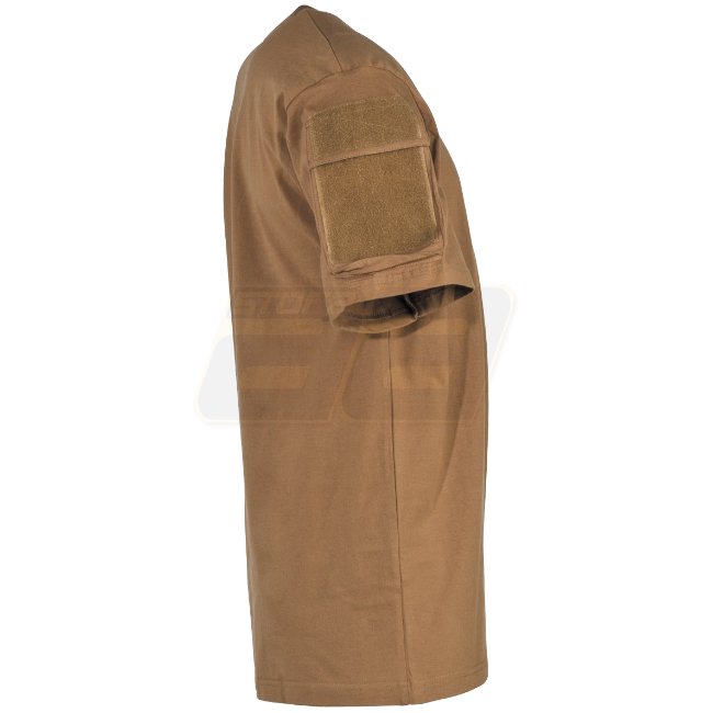 MFH Tactical T-Shirt Sleeve Pockets - Coyote - M is a durable and practical shirt with two sleeve pockets, reinforced crew neck, and made of high-quality 100% Cotton material.
