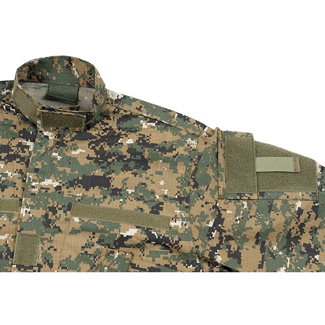 MFH US ACU Field Jacket Ripstop - Digital Woodland - 3XL: US Army standard model field jacket with concealed zip, multiple pockets, and velcro panels for versatility. Adjustable stand-up collar, back pleats for mobility, and elbow protector pockets. Made