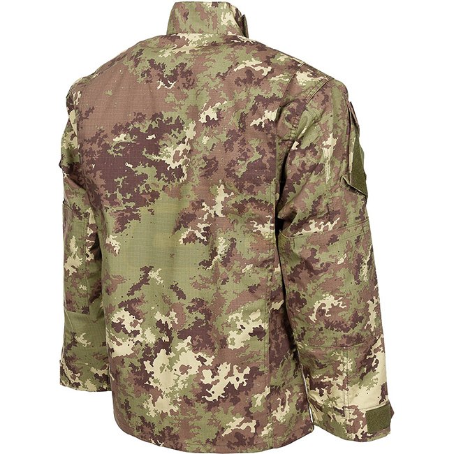 MFH US ACU Field Jacket Ripstop - Vegetato - XL: US Army standard model field jacket with 2-way zip, multiple pockets, velcro panels, elbow protectors pockets, and adjustable stand-up collar for comfortable and versatile wear. 100% Cotton material.