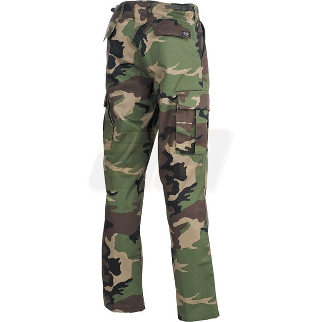 MFH US Combat Pants - M97 SK Camo - S are classic US ARMY pants with front zip, 2 pants pockets, 2 hip pockets, and 2 leg pockets. Adjustable waistband, extra wide belt loops, and drawstring hem. 65% Polyester, 35% Cotton.