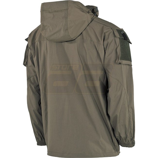 US PCU PROTECTIVE COMBAT UNIFORM waterproof, windproof, breathable concealed zip with press buttons chest pocket with zip sleeve pockets with flap and velcro both with velcro panels hood with drawstring and cord stopper velcro panel on the back of the hood velcro panel on the chest 2-way pit-zip vents sleeve ends adjustable by velcro and drawstrings elbow darts for higher comfort partially net facing inside