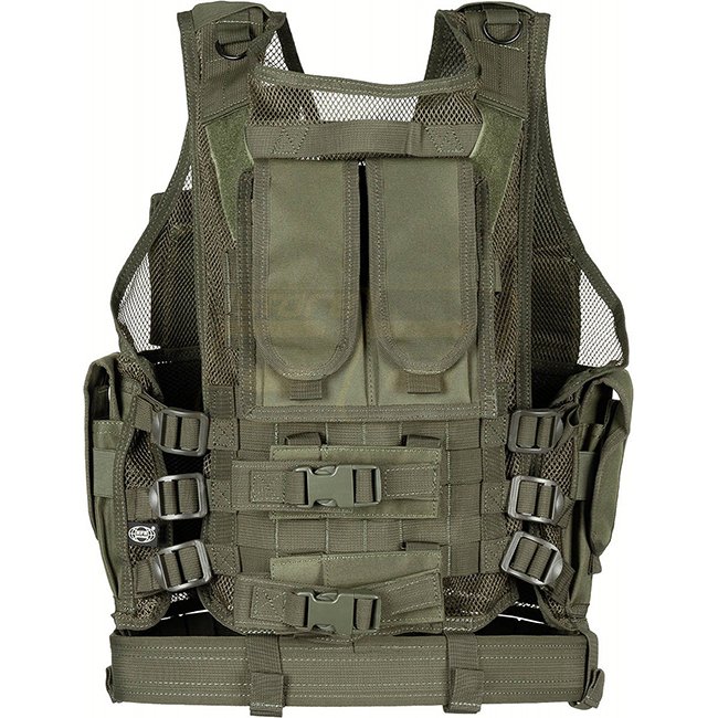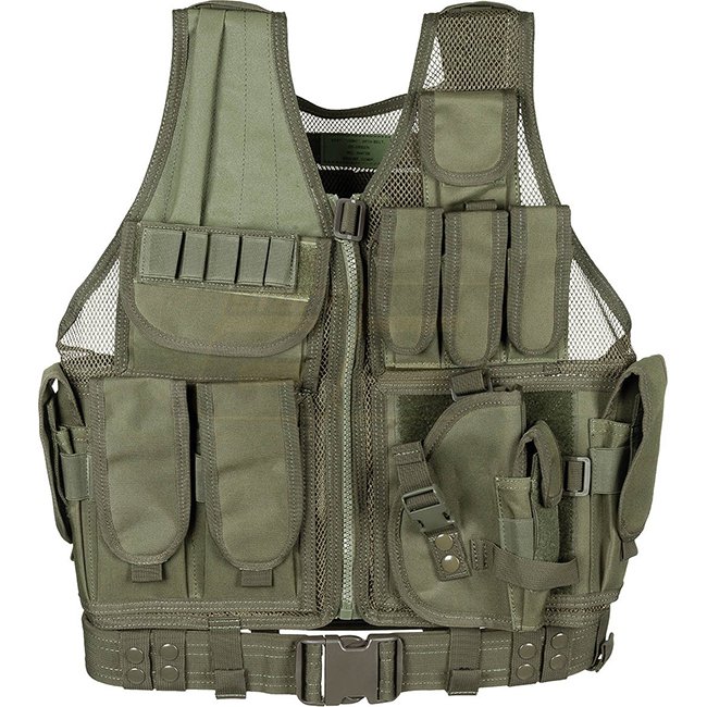 MFH USMC Vest & Belt - Olive: Mesh material, adjustable size, multiple pockets, Molle pouches, removable holster, cartridge holder, Molle attachment loops. 100% Polyester.
