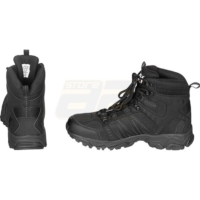 High-quality combat boots with waterproof and breathable HBR membrane. Quick-drying material, excellent running properties. Anti-skidding sole with lifted toe area for protection against boulders. Padded bootleg and tongue, replacable inner sole. Two-zone