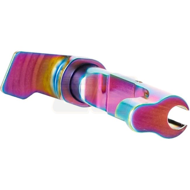 Nine Ball Marui Hi-Capa Custom Magazine Catch in Rainbow finish for 5.1/4.3 GBB pistols. Enhance your gun's aesthetics and functionality with this eye-catching upgrade.