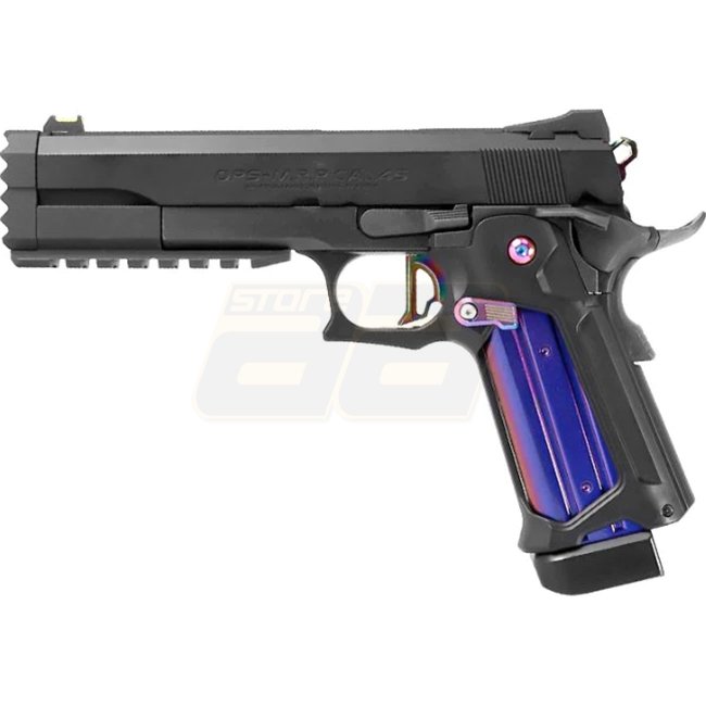 Nine Ball Marui Hi-Capa 5.1 / 4.3 GBB Skeleton Grip R - Black: High-performance airsoft pistol designed for precision and speed. Features a sleek black design with skeleton grip for enhanced control. Ideal for competitive shooting and tactical scenarios.
