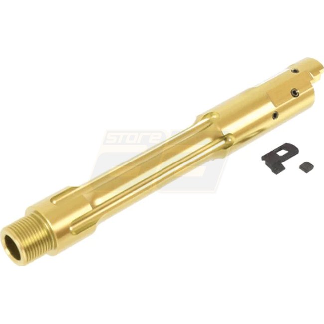 Nine Ball Marui Hi-Capa 5.1 GBB TDC Threaded Outer Barrel in Gold color, perfect for upgrading your airsoft gun. Enhance your shooting performance with this high-quality accessory.