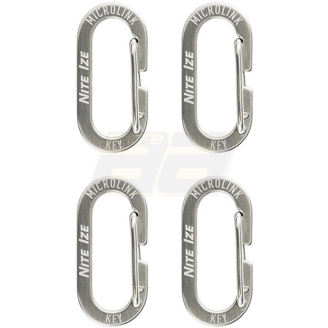 Nite Ize Microlink Carabiner 4 Pack - compact stainless steel carabiners perfect for securing keys, gear, and more. Four-pack with dimensions of 25 x 12 x 2mm and a weight of 4g each.