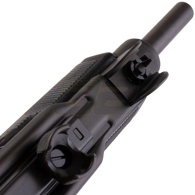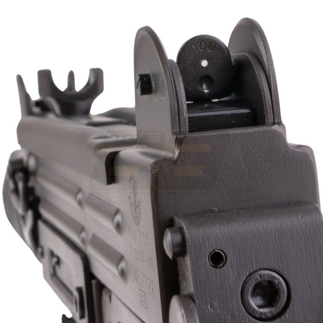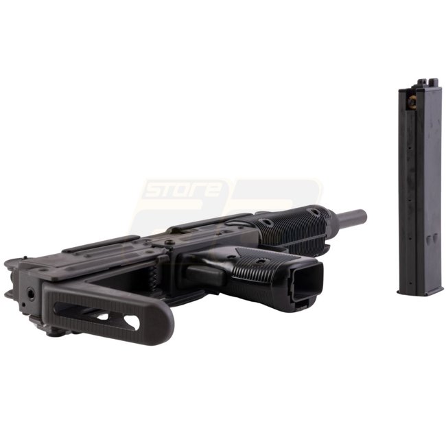 The Northeast UZI 60 CO2 Blowback Airsoft SMG is a faithful replica of the 1960s IDF UZI, featuring steel construction with a parkerized finish, polymer grips, and a detachable wooden stock. It replicates realistic functions, such as the grip safety and bolt mechanics, making it an authentic addition for enthusiasts. The magazine switch allows easy dry-fire toggling, and the semi-auto mode is snappy, with a realistic rate of fire. This is the first full-metal, full-size gas blowback airsoft UZI—a must-have for collectors.