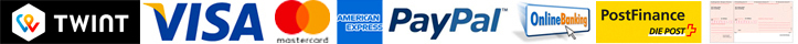 Our extensive customer service also includes a wide selection of payment methods. Choose the one that suits you best: Either you order and transfer the amount to our bank account, or you choose PostFinance, PayPal or Credit Card.