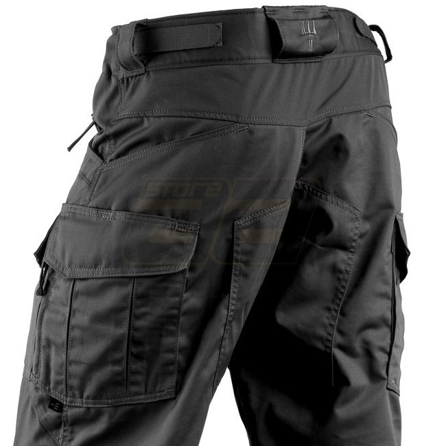 The thigh pockets deliberately placed towards the front, which are also accessible in a seated position thanks to large openings and vertical zippers, as well as double-reinforced communication pockets placed directly next to them, accommodate frequently used equipment. The main pockets can also be closed with a large button, with Velcro or both at the same time. Angled back pockets remain accessible even when gear is carried on a wide battle belt.
