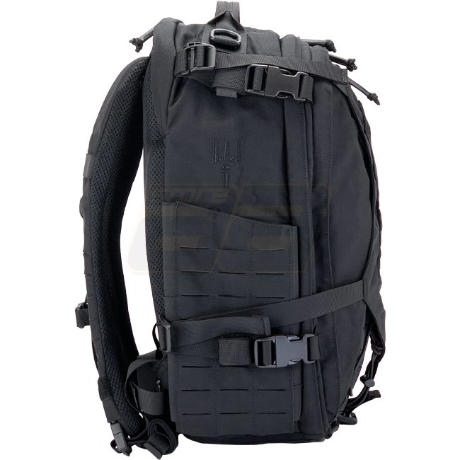 The shoulder straps come with small hook & loop rectangle on the front to attach a country or ID patch, a fully adjustable sternum strap as well as fast-release buckles to take off the pack. Laser-cut MOLLE surfaces provide additional installation space for pouches and accessories like a compass or other items you may need access to. Vertical slits can be used to install loops for holding a hydration tube or cables in place.