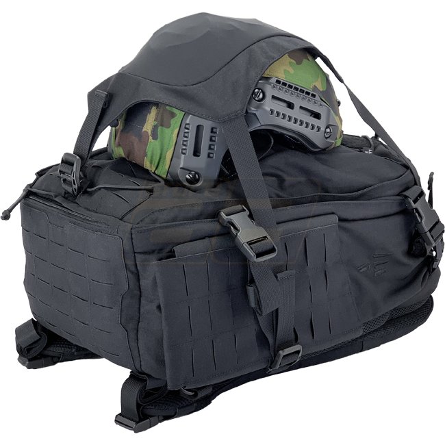 In the upper area on the outside a small pouch for readily accessible items such as keys can be found. Lined inside with a soft material it also keeps glasses secure. A helmet hammock (included) can be installed on the front when needed by means of G-hooks. The 4-way elastic stretch material adjusts to any type of helmet, be it your combat bucket or simply the bike helmet for your daily commute to work.