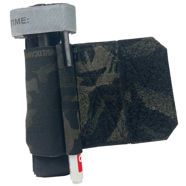 Get the Pitchfork Hook & Loop TQ Insert 2.0 in Multicam Black - a must-have accessory for quick access. Attaches to various surfaces for easy tourniquet storage & access. Features an elastic band for secure hold and quick release, along with a pen holder